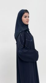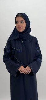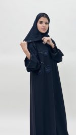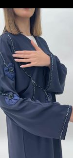 عباية مطرزة شك يدوي قماش أرماني – كحلي